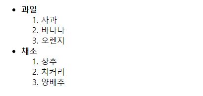 과일과 채소는 ul 태그를 사용한 모습이다.