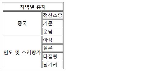 중국, 정산소종은 둘 다 두 번째 행이다. 그래서 같은 tr 태그 안에 있는 것이다.
