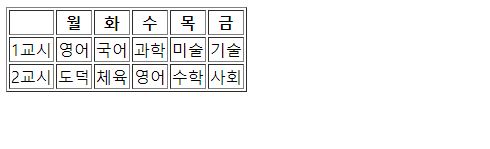 th와 td에 colspan과 rowspan 속성을 사용하여 표에서 셀이 차지하는 영역을 조절할 수 있다.