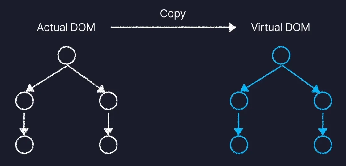 - DOM을 자바스크립트 객체로 흉내낸 것으로 일종의 복제판이다