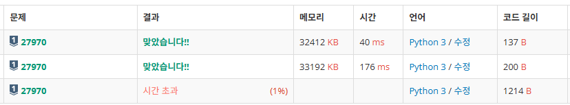 이렇게 바꾸니 코드도 더 짧고 시간도 조금 더 빨라졌다.