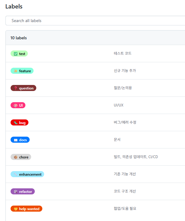 라벨은 하나만 선택할 수 있는 게 아니라 다중선택이기 때문에 프로젝트에 맞게 혼용해서 써도 되는 거 같다.