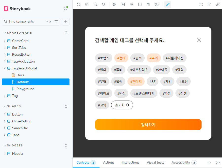 게임 카드들의 경우 선택한 태그(장르)를 기반으로 결과를 필터링할 수 있다.