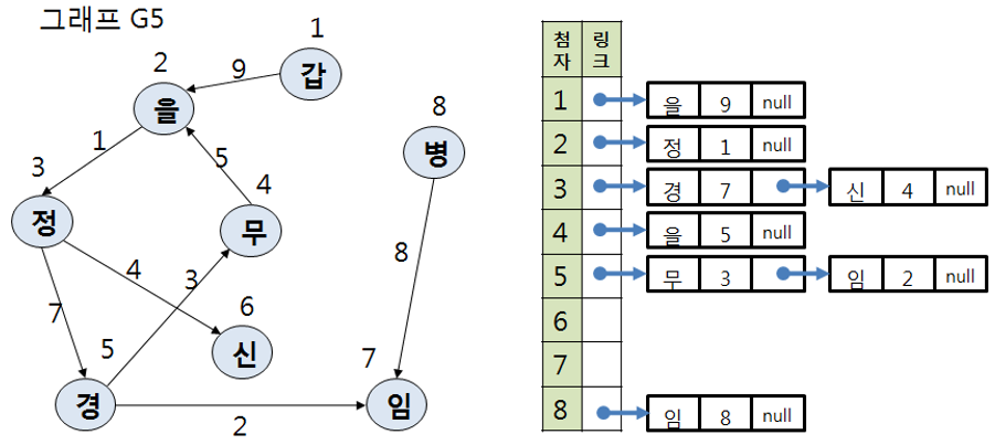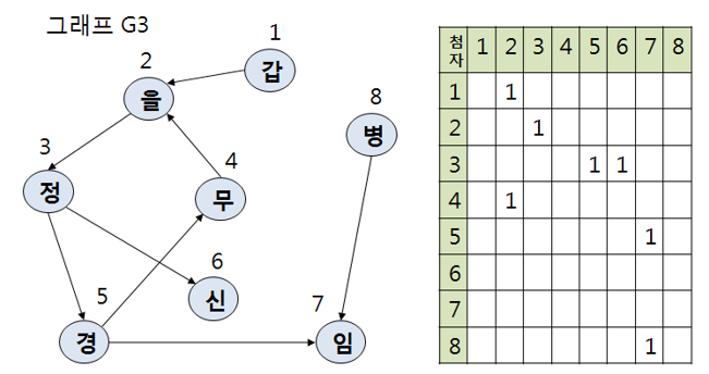 인접 행렬 법보다 메모리를 덜 차지하지만, 시간 복잡도가 높아진다.