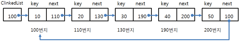 마지막 노드가 첫 번째 노드를 가리킨다.