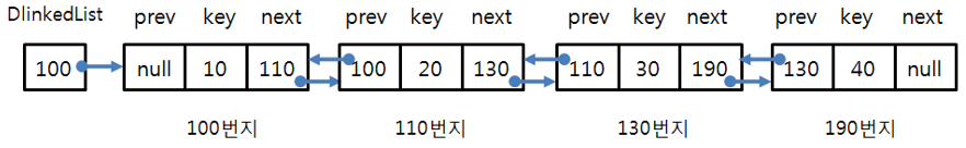 다음 노드의 주소값과 이전 노드의 주소값을 모두 저장한다.