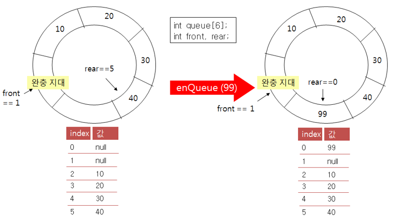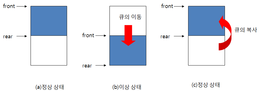 선형 큐의 단점을 해결한다. (연결 리스트도 가능하다.)