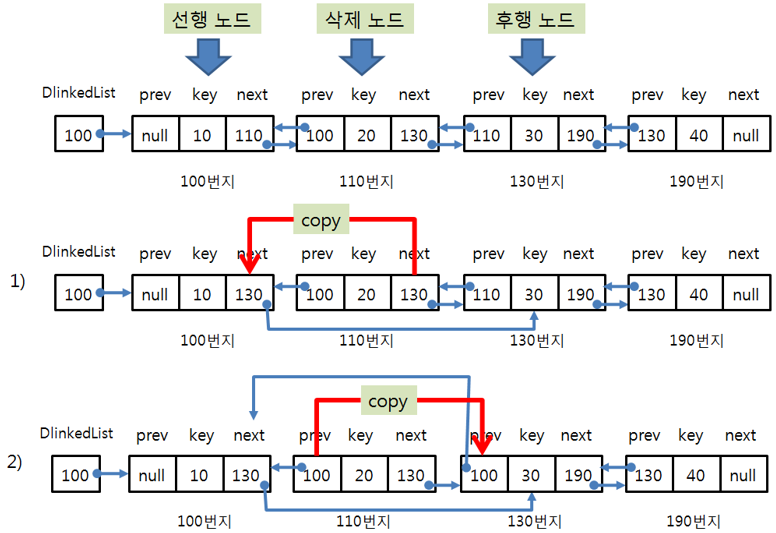 선행 노드와 후행 노드로 모두 접근 가능하다.