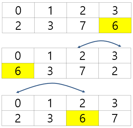 교환이 끝나면 그 사이의 위치로 피봇을 옮긴다.