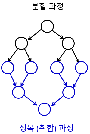 분할 정복 알고리즘으로 분류되나, 사실 알고리즘이 수행되는 과정을 살펴보면 정복 후 분할하는 알고리즘이다.