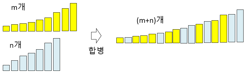 합병의 수행 시간은 입력의 크기에 비례한다.