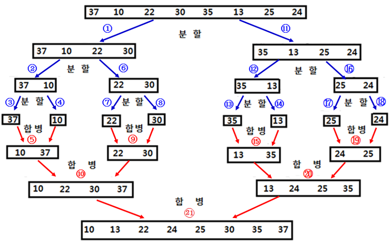 - 합병 정렬 알고리즘