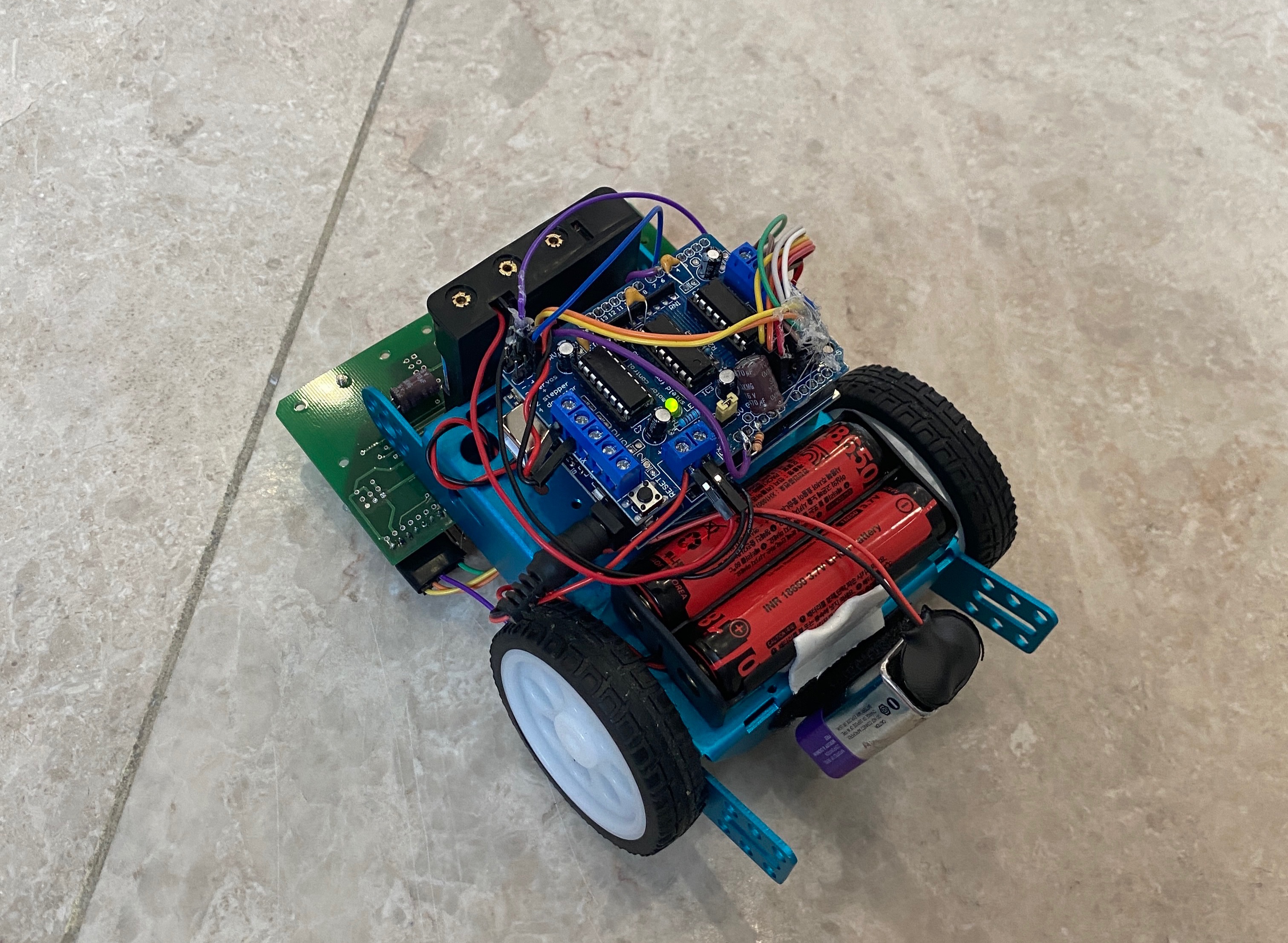 아두이노를 노트북에 연결했을 때는 잘 작동되는데 빼면 작동이 되지 않거나 힘이 매우 약했다. 어느 정도냐면 쟤를 손으로 들고 있으면 바퀴가 돌아가고 있는데 바닥에 내려놓으면 안돌아갔다. 바퀴의 마찰력이 더 강한 것이다. 아 ㅋㅋ 유먼가? 처음엔 전력 부족 문젠지 모르고 분명 돼야되는데 왜 안되지ㅠㅠ 이러고 있었다. 다행히 조교님😇의 도움으로 해결했다.ㅠㅠ