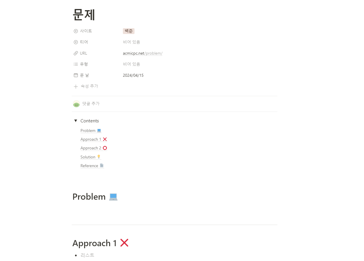 - Approach X: 잘 못 접근한 풀이 (오답노트)