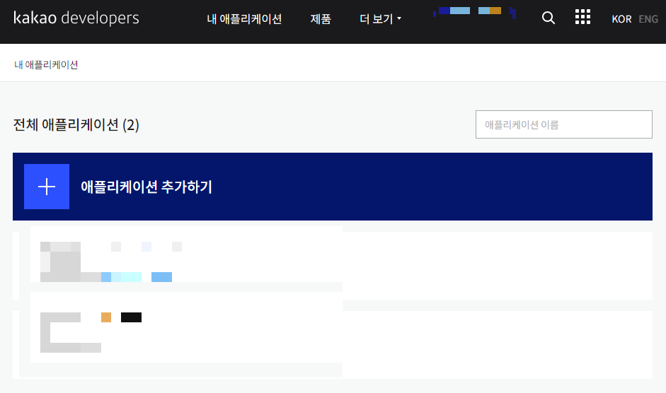 먼저 카카오맵 API를 쓰기 위해서는 여기에서 API 키를 발급받아야 합니다.
