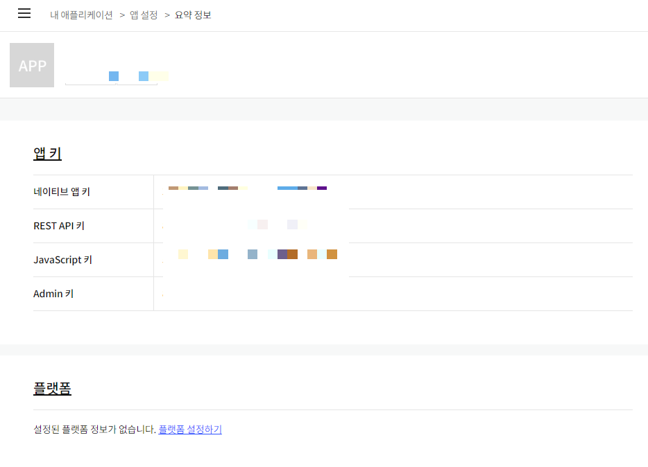 그리고 아래 플랫폼 설정하기를 눌러서 도메인을 등록합니다. 저는 처음에 Web에 http://localhost:5173을 등록했고, 이후에 포트번호를 바꾸면서 수정해 줬습니다. 포트 번호 바꾸면 꼭 여기에서도 수정해주셔야 해요! 전 까먹고 수정 안 했다가 지도가 안 떴는데 포트번호 바꿔놓고 여기에 등록을 안 해줘서 그런 거였어요.. 🙃