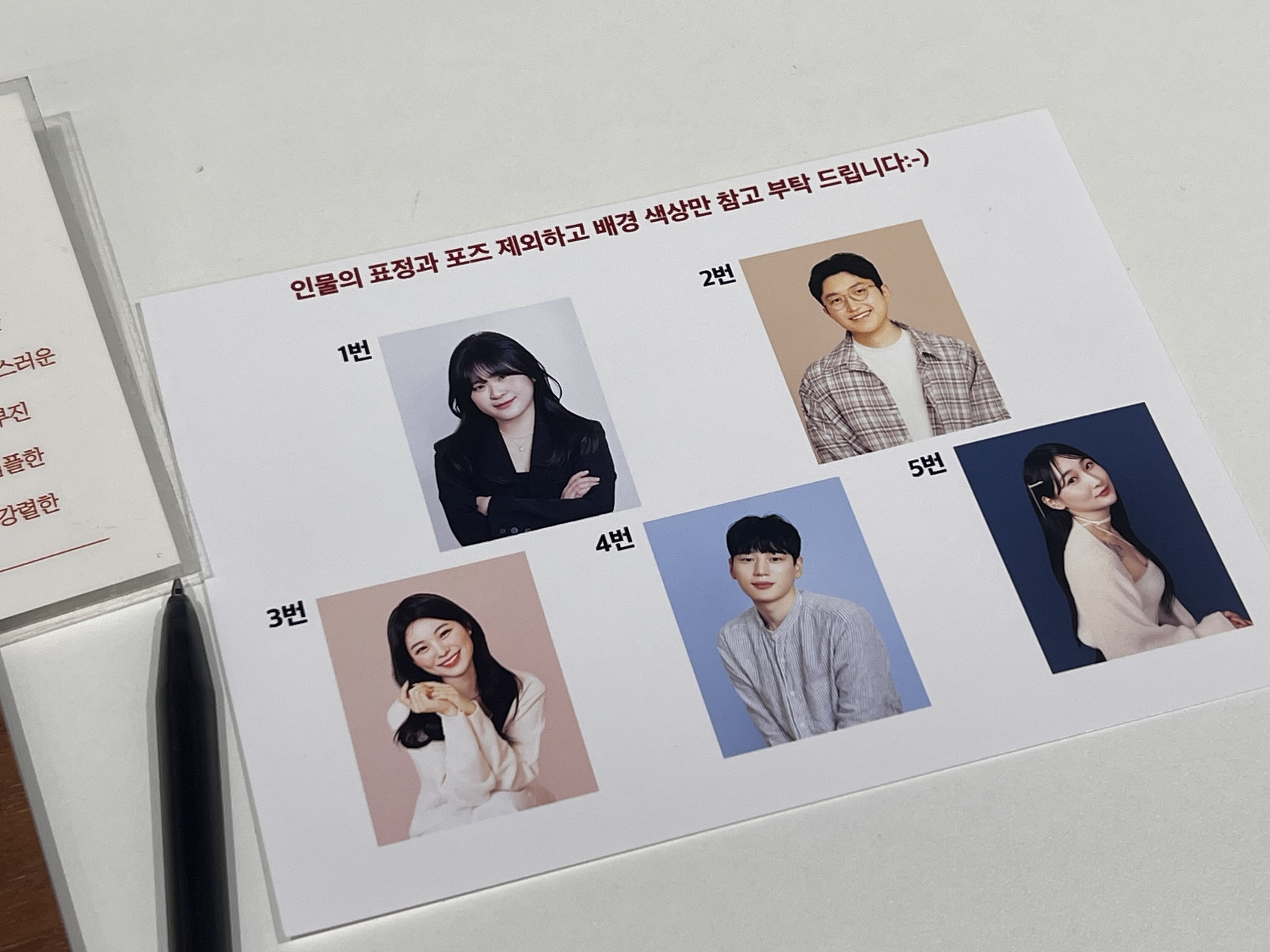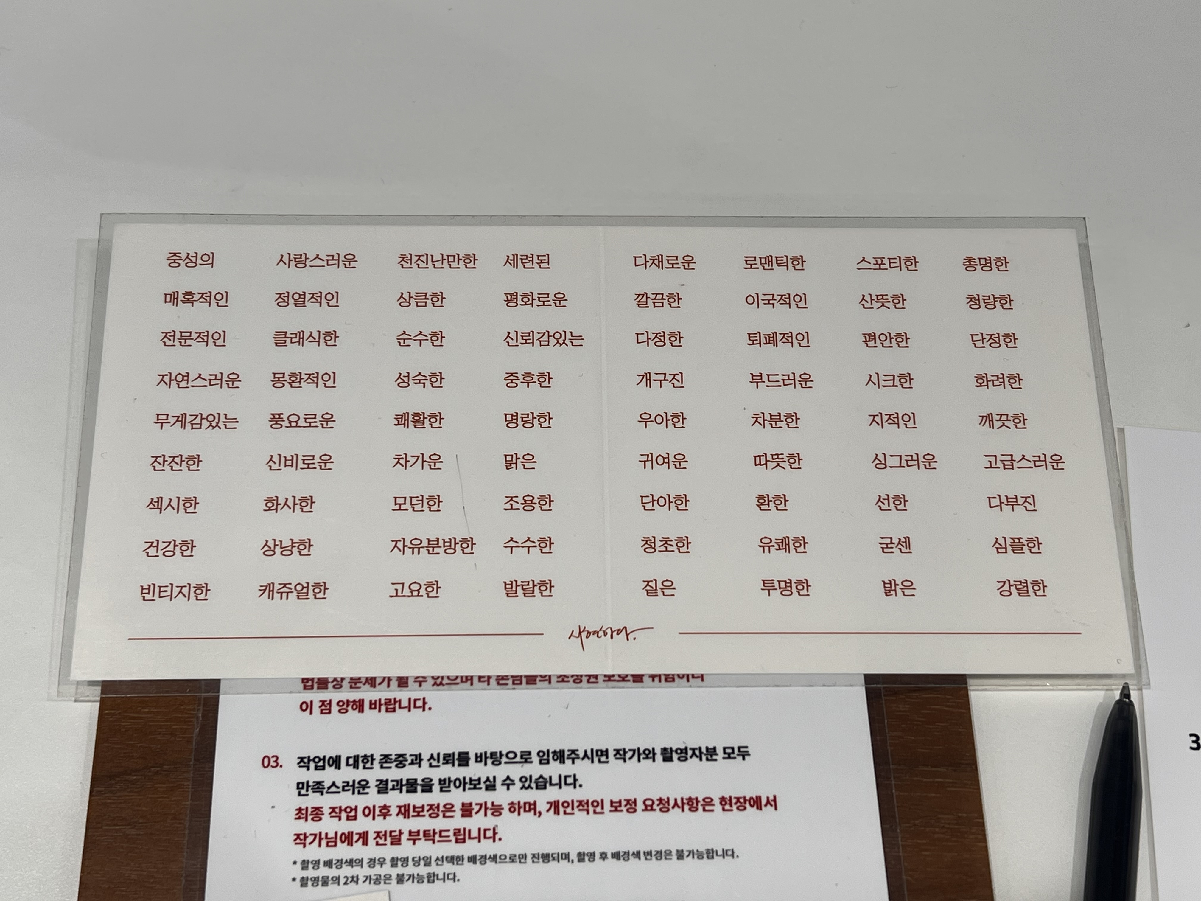 이렇게 선택한 배경과 키워드를 적고 사진작가님께 보여드려요 :)