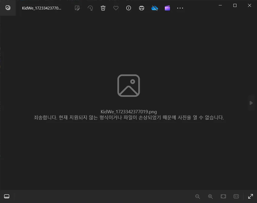 사실 이렇게 우회해 봤는데 이미지 저장이 되는 줄 알았으나 파일을 열어보니 아래처럼 떴다.. 하긴 당연히 안 되는 게 맞지